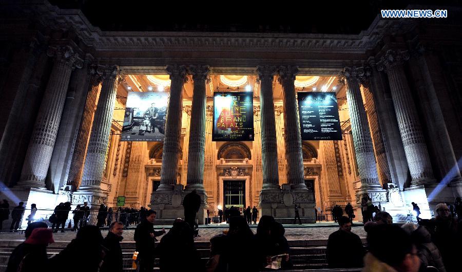 People wait to enter the Grand Palais to watch the "Nuit de Chine"(Night of China) grand soiree held in Paris, France, Jan. 27, 2014. The "Nuit de Chine" grand soiree marking the 50th anniversary of diplomatic relations between France and China was held at the Grand Palais in Paris. (Xinhua/Chen Xiaowei)