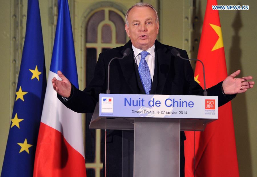 French Prime Minister Jean-Marc Ayrault speaks during the "Nuit de Chine"(Night of China) grand soiree held in Paris, France, Jan. 27, 2014. The "Nuit de Chine" grand soiree marking the 50th anniversary of diplomatic relations between France and China was held at the Grand Palais in Paris. (Xinhua/Chen Xiaowei)