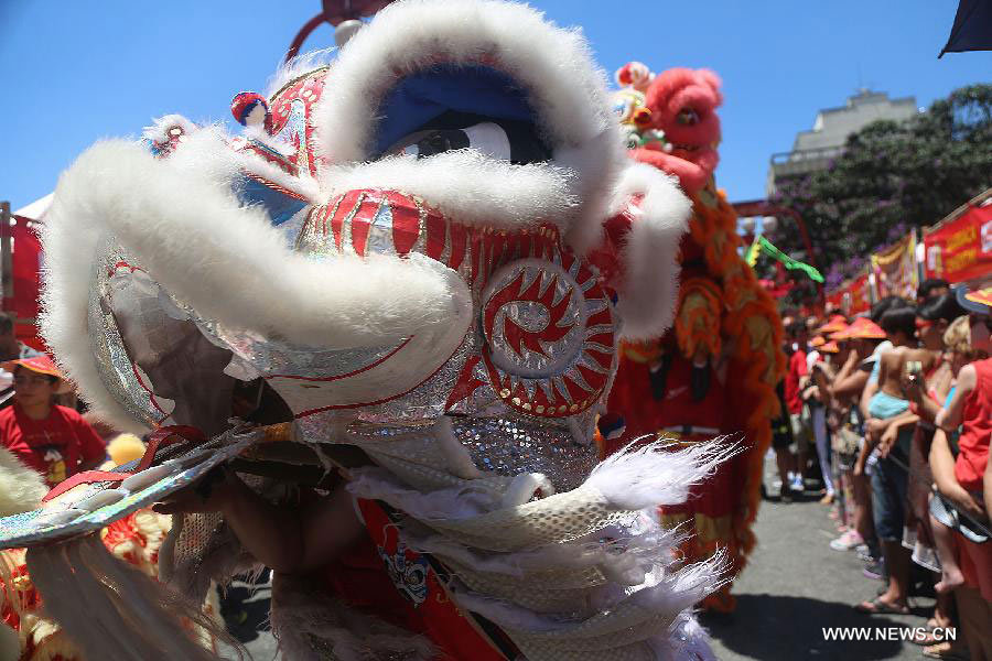 People take part in the Chinese Lunar New Year celebrations, at the Liberdade district, in Sao Paulo, Brazil, on Feb. 1, 2014. [Xinhua/Rahel Patrasso]