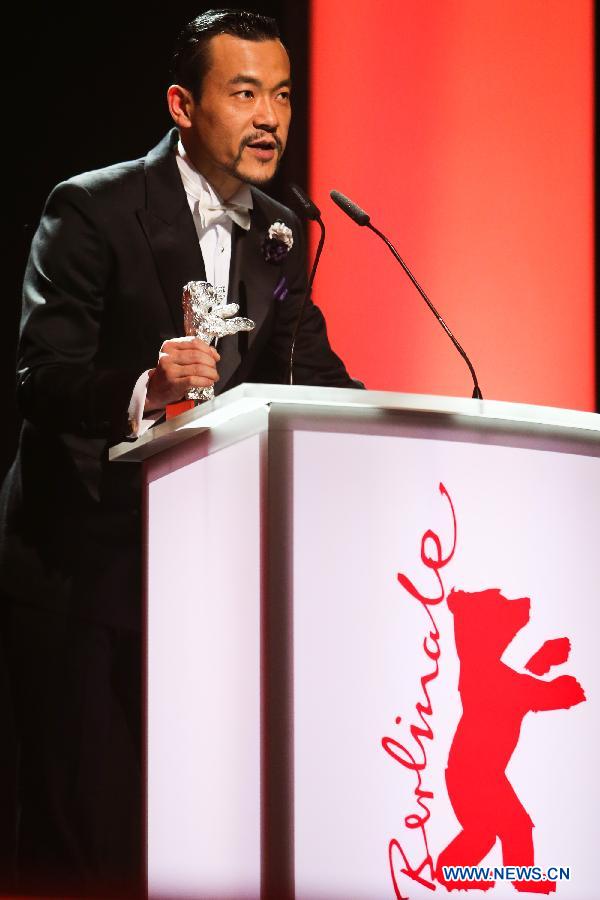 Actor Liao Fan receives the Silver Bear for Best Actor for "Black Coal, Thin Ice " during the awards ceremony at the 64th Berlinale International Film Festival in Berlin, Feb. 15, 2014. (Xinhua/Zhang Fan)