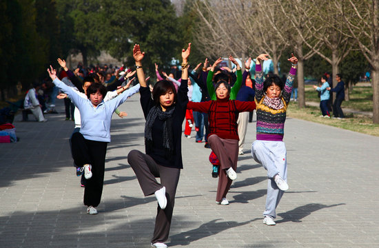 People are doing exercise in the Temple of Heaven on April 13, 2012 (Photo by Xu Xinlei)