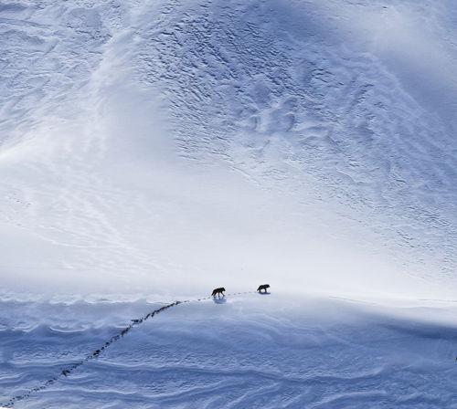 Wolves walking in the desert by Fan Shangzhen, a photographer from Shangtufang, won the third prize in the Nature Singles category.