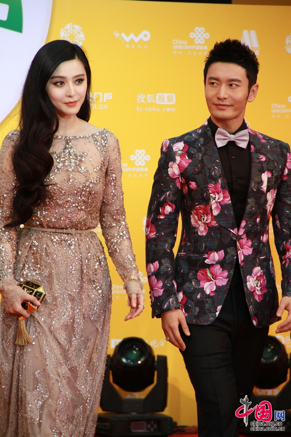 Renowned Chinese actress Fan Bingbing and actor Huang Xiaoming walk the opening ceremony red carpet of the 4th Beijing International Film Festival on April 16, 2014 at the National Center for the Performing Arts in Beijing, the capital of China. The film festival will run from April 16 to 23. [Photo by Chen Weisong/China.org.cn]