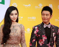 Chinese actor Ge You (R) receives the Chevalier medal in the Order of Arts and Letters from Frederique Bredin, President of French National Center of Cinematography and the moving image, in Beijing, capital of China, April 17, 2014. [Xinhua/Luo Xiaoguang]