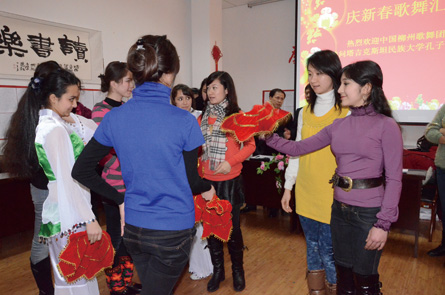 In 2012,the actors of the Guangxi Art Troupe were teaching Chinese Folk Dance.