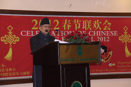 The Nepal Premier gave a speech in “Happy Chinese New Year Gala,2012”.