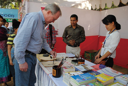 In February 2013, visitors took a hands-on experience on Chinese calligraphy in the first “Happy Chinese New Year” Fair in Dacca.