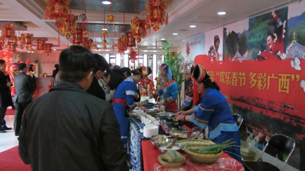 In 2012, the ethnic group of China demonstrated the traditional practice of wrapping zongz (glutton rice pudding) and making tea in the "Happy Chinese New Year" event.