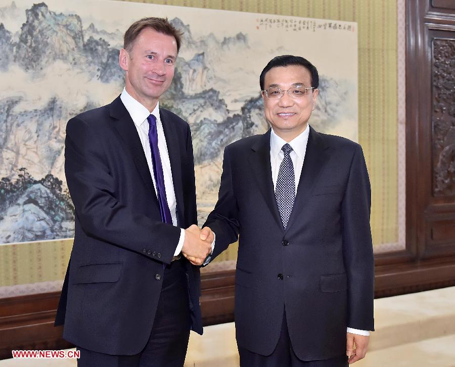 Li made the remarks while meeting with British Health Secretary Jeremy Hunt, who is here to co-chair the second meeting of the China-UK high-level cultural exchange mechanism with Chinese Vice Premier Liu Yandong.