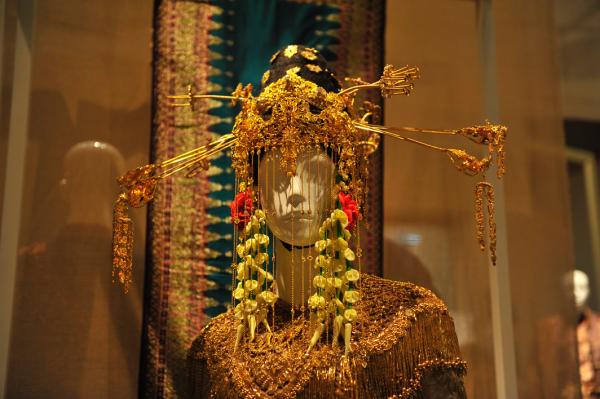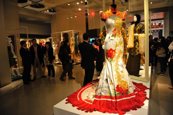 Traditional clothes and accessories from China and ASEAN countries are on display at the exhibition 'Glamour to Wear: The ASEAN and Chinese Costume Culture' held in China's capital city of Beijing. on April 8, 2014. [Women of China / Zhang Jiamin]