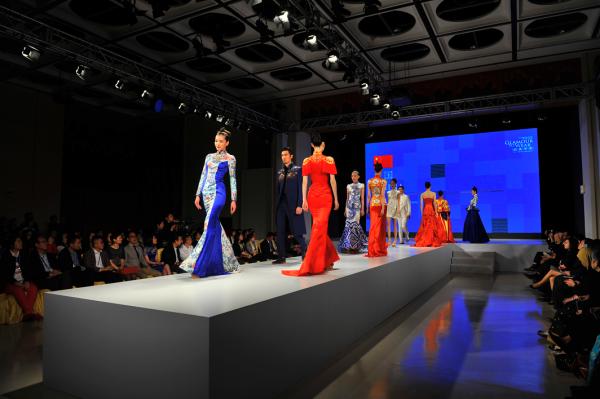 Models present clothes with traditional Chinese characteristics at the opening ceremony of the exhibition featuring traditional costumes of China and the ASEAN countries that was held in China's capital city of Beijing, on April 8, 2014. [Women of China / Zhang Jiamin]