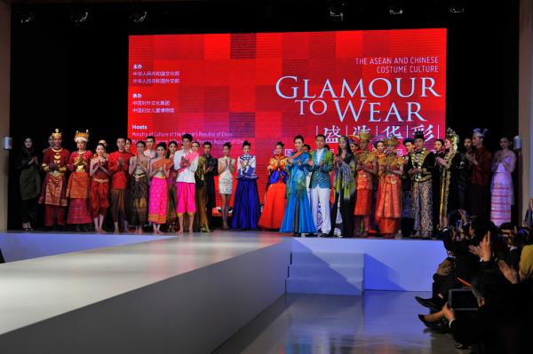 Models present traditional clothes from China and ASEAN countries at the opening ceremony of the exhibition 'Glamour to Wear: The ASEAN and Chinese Costume Culture' held in China's capital city of Beijing, on April 8, 2014. [Women of China / Zhang Jiamin]