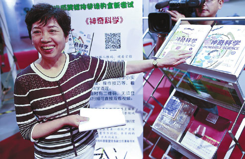 Zhong Zhixian, chairwoman of Beijing Publishing Group, introduces the book the Incredible Science at the expo.