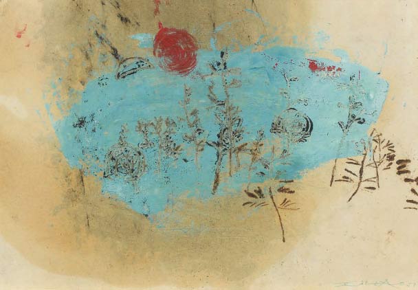 , 1951, monotype with gouache on paper, by Zao Wou-ki. [Photo/artcurial.com]