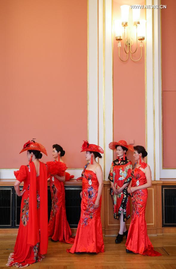 Chinese dancers pose for photos before the opening ceremony of 2014 "China meets Berlin" Culture Festival at the city hall of Berlin, Germany, on June 6, 2014. (Xinhua/Zhang Fan)
