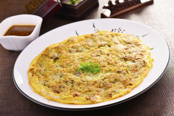 Oyster omelette served at Imperial Palace Restaurant. [Photo by Ye Jun / China Daily]