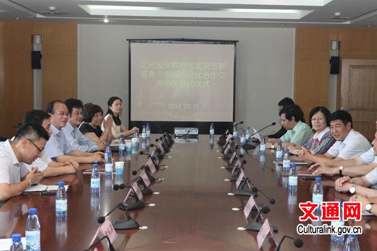 The Office of External Affairs of the Ministry of Culture and Beijing Municipal Commission of Education signed a strategic agreement to encourage teenagers to be involved in cultural exchanges. The agreement, signed on July 11, 2014, echoed the proposal of promoting Chinese culture in the Third Plenary Session of the 11th Central Committee.