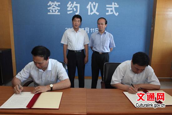 Ding Wei (Rear, at right), deputy minister of the Ministry of Culture and Yang Xiaochao (Rear, at left), deputy mayor of Beijing, witnessed the two sides signing the agreement.