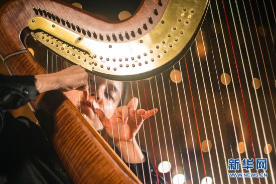 A musician plays the harp at the Amphitheatres of El Jem on Aug 9. [Photo/Xinhua]