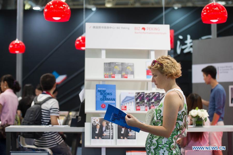 A foreigner reads a book during the 21th Beijing International Book Fair in Beijing, China, Aug. 27, 2014. The five-day book fair opened here Wednesday with the participation of some 2,000 exhibitors from 78 countries and regions. [Xinhua/Luo Xiaoguang]