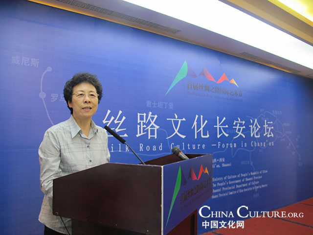 The major forum of Silk Road Culture Forum in Chang'an, part of the first Silk Road International Arts Festival was held in Xi’an on Sept 12. Yan Junqi, vice chairwoman of the Standing Committee of the National People's Congress (NPC) and chairwoman of China Association for Promoting Democracy, made a keynote speech. Bai Aying, vice governor of Shaanxi province, attended the forum.