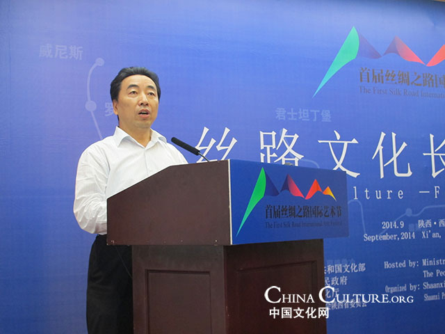 Liu Kuanren, director of Department of Culture of Shaanxi province, attended the opening ceremony of the Silk Road Culture Forum in Xi’an, Shaanxi Province, on Sept. 12, 2014. [Photo/chinaculture.org Yang Qi]
