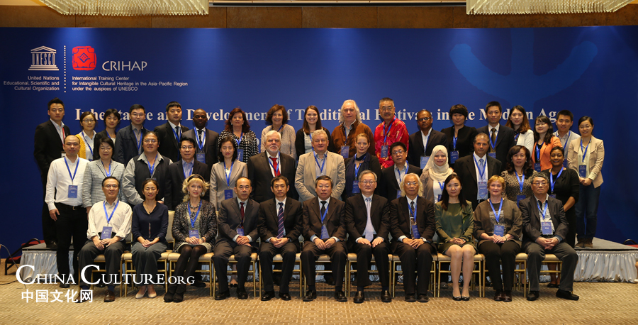 The Inheritance and Development of Traditional Festival in the Modern Age Workshop on Happy Chinese New Year was held in Shanghai on Oct 16. It was sponsored by the Bureau for External Cultural Relations of the Chinese Ministry of Culture and the Information Department of the Ministry of Foreign Affairs, co-organized by International Training Center for Intangible Cultural Heritage in Asian-Pacific Region (CRIHAP). Xie Jinying, deputy director of the Bureau for External Cultural Relations, Wang Wei, deputy director of the Shanghai Municipal Administration of Culture, Radio, Film and TV and Niu Genfu, vice president of the Chinese National Academy of Arts, attended the opening ceremony.