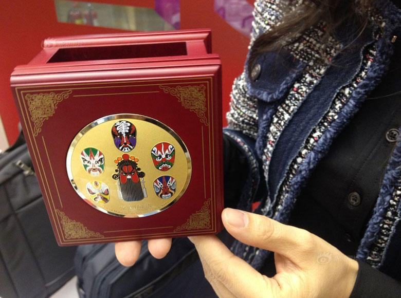 A gift box with decorations of opera masks. [Photo/Sina.com]