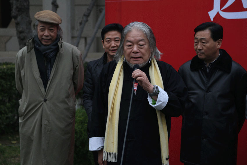 Huang Jianhua, art collector and donor of Dali’s sculptures, speaks at the donation ceremony on Nov 26, 2014. [Photo/Xinhua]
