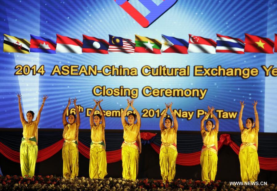 Artists from Singapore perform during the China-ASEAN Cultural Exchange Year 2014 Closing Ceremony in Nay Pyi Taw, Myanmar, Dec 16, 2014. [Photo/Xinhua]