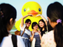 The Rubber Duck, as it is known in English, first popped up in Hong Kong's Victoria Harbor in May and has now landed in Beijing's Garden Expo.