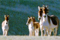 Kiang lives in high and cold desert areas. In summer it moves to high mountains at an elevation of more than 5,000 meters, and in winter places at lower elevation. It is highly alert by nature, fond of group life and good at running. It mainly feeds on couch grass, carex and wormwood genus. In dry environment it can find appropriate places to plane pits with hoof and dig out water for drinking, also offering water for chiru and other ungulate.
