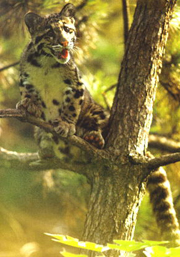 Also known as Moire Leopard, Lotus-leaf Leopard, Willow-Leaf Leopard, and Camphor Leopard, it belongs to theFelidae family of Carnivora order. Its Latin scientific name is Neofelis nebulosa, and English name is Clouded Leopard.