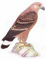 It is a large-size bird of prey, with a full-length of about 86 centimeters. Its body feathers are mainly chestnut brown. The poult's head and neck feather is yellow brown. Except the three most outboard pieces of the primary remiges, all basal portions of remiges have white spots. Its rectrices are hoar and the front tip is black brown. When growing up, its wing and tail feathers have no white color and the color of the vertex feather deepens to golden brown. The beak is black and tan with slightly blue basal portion. Its toes and claws are yellow.