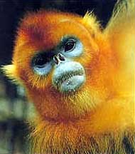 The body length of the male is 52 to 78 centimeters and the length of the tail is 57 to 80 centimeters, weighing about 17 kilograms. The female is smaller and weighs about 8 kilograms. Due to protuberant mouth and obliquely upward nostrils, it is also called Snub-nosed Monkey. Its cheek is azure. The male monkey, from nape to tail dock, has light taupe coat hair mixed with golden long hair up to 30 centimeters in length and with flamboyant color. The female has no golden long hair.