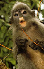 It inhabits in tropical and subtropical jungles, dwelling in groups of 10 to 30. Good at climbing and jumping, it has a certain moving route and seldom gets down to the ground. When startled they often flee in order. It feeds on young leaves, flowers and fruits, as well as bird ovas and birdies.