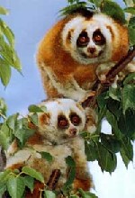 Slow Lorisdwells on trees in tropical rain forests and subtropical monsoon forests, seldom getting down to the ground, and prefers moving about alone. Its actions are particularly slow and logy; only when under attack may it speed up, so it is also named "Loris". In daytime it hides in huge tree holes curling up in glomeration, or rests on tree branches; at night it comes out to look for food. It feeds on fruits, as well as insects, birdie and bird ova. It can mate all the year round, and the gestation period lasts about 193 days. Mostly it litters in winter, one baby per fetus, once in a while two babies. Suckling period is 3.5 months. Under breeding condition, it has a lifespan of 12 to 14 years.