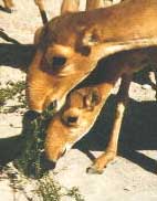 Living in desert and semi-desert zones, it moves about in subgroups; sometimes hundreds of them adopt mass migration. In winter it moves about in daytime, in summer it moves about in the morning and dusk. There is a seasonal migration phenomenon that it moves southwards warm hillside zone facing sunlight. It runs very fast with stamina, hence it is called "long-distance running sportsman" by herders. It mainly feeds on grass and bushes. Oestrus and mating are at the end of autumn and the beginning of winter. Sometimes there's a drastic vying for females among males which won't be long. Its gestation period lasts over 6 months with 1 to 2 babies per fetus. It grows to sexual maturity at the age of a year and half. Under breeding condition, it has a lifespan of 10 to 12 years. Its antelope horns enjoy worldwide reputation as of precious medicinal value.