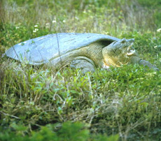 It is the largest variety of the Turtle family. Its carapace is 30 to 47 centimeters long and 30 to 41 centimeters wide. Its dorsal carapace is round, covered with soft keratin skin, which is gray and flat, with underdeveloped calipash. It has a small head with short proboscis, on the forepart of which there are nostrils. Its four limbs have strong webs and the three inside toes have claws. Its tail is short, seldom stretching outside the calipash. Its head and collum can be entirely withdrawn into the shell while the four limbs cannot. Its head is in dust color mixed with irregular pale stripes. Its jaw is yellowish white and belly white. Its pupils are in the shape of oval.