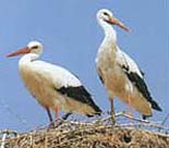White Stork usually paddles in morass, swamp or pond side looking for food, and mainly feeds on fish, frogs and insects, etc. It is naturally restful and alert, slow in flying and walking, and usually stand with mono-podia when having rest. The bird begins breeding in March, and will then build nest on high mega-phanerophytes or buildings, and spawn 3 to 5 eggs per nest. The eggs are usually white, and are taken care of by male and female birds in turns. The incubation period usually takes about 30 days.