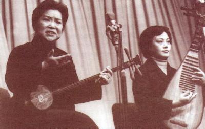 Zhu Xueqin (left) in a performance of Suzhou Pingtan |