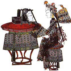 Shadow plays in north China's Shanxi province are similar to those in Shaanxi in terms of artistic features and craftwork skills. People draw lines to decorate the tiny parts since they are difficult for knives to pierce. The colors used are mostly bright red, green and apricot, and are produced by artisans themselves. They are known for lasting for a long time.