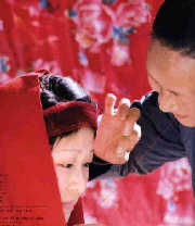 There are different kinds of rituals for marriage. From match-making, engagement, dowry preparing, wedding weeping, bride greeting, formal bows to heaven and earth, entering the bridal chamber, to the bride's home visit at the 3rd day of marriage, different sequences are accompanied by different fixed rituals. Every ritual, conveying specific wishes, expectations and blessings, naturally entails a variety of ritual ballads and singing opportunities. Among the ritual marriage ballads, the most sentimental and moving ones are for "wedding weeping", represented by "My Cousin Sister" and "Mum's Dearest Daughter" ofSichuan Province, and "Wedding Weeping Song" ofShanghai.