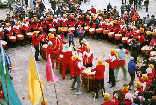 Dance songs are folk songs singing while dancing, characterized by strong rhythms, and mainly sung on the occasions of festivals, celebrations, or gatherings such as "shehuo" (merry-making activities), "yang'ge (a popular rural folk dance) tune", and "huahui'ge" in north China; "lantern song", "tea-picking song" and "flower-drum tune"in south China. According to their dancing forms, dance songs fall into the following categories such as "dalianxiang", "huagun", "lianhualuo", "stilt", "dragonboat", "flower boat", "songqilin", "chundiao", "shibuxian", "taipinggu" etc. They also include some songs related with folklores, local operas and folktales etc.