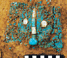 In addition to the discovery of the said tracks, a large turquoise dragon ware was excavated. The dragon, about 70 centimeters long and made up of 2000-odd various fine turquoises, is a rare dragon-designed antique in early China in terms of scale, exquisiteness, and weight.
