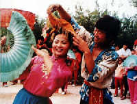 The "Flower-drum Lantern," also called the "Red Lantern", used to be performed by men disguised as women, with stage names like "Little Bound Feet", and "Little White Shoes", etc. The footwork is based on "soft steps" and "quick short steps". In the course of its development, the laggard elements of the "Flower-drum Lantern" were gradually dropped, and female performers emerged, signaling the "up-mountain big steps". All these transformations, however, have not changed the dance's basic configuration.