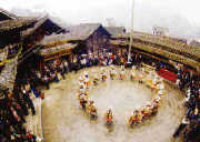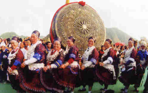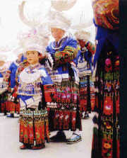 The Miao's most important celebration takes place after their autumn harvest. Men play lusheng while women dressed in gaily decorated costumes perform a special dance using stools as props.