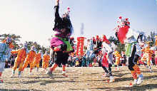 Dancing is the major element of Huagudeng which consists of "Dachang", is "Xiaochang" and "Pangu" while "Dachang" is is a group dance; Xiaochang a narrative dance of two or three dancers and its central part and Pangu shows a good combination of dancing, martial arts and technical skills with a taste of plastic arts.Whenever the Spring Festival arrives, the dancing teams of each village and rural area compete with each other in rushing off to dance in thetemples and at the fairs, and sometimes there are one or several dozens of teams dancing there, which draws a colorful painting with a strong taste of rustic folklore.