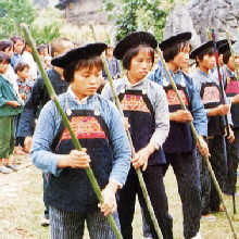 Ethnic GroupStriking Bamboo Pole Dance is named after the sound the Buyi people produce while striking the broken long bamboo poles as its dancing props and popular in some villages and towns of Dushan County inGuizhou Province.