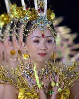 When Tai first performed the dance years back, she didn't grasp it well and either grinned or sulked. But the countenance she has acquired now is long sought. It's an expression of serenity as Goddess of Mercy should be kind and look composed.